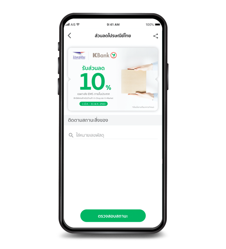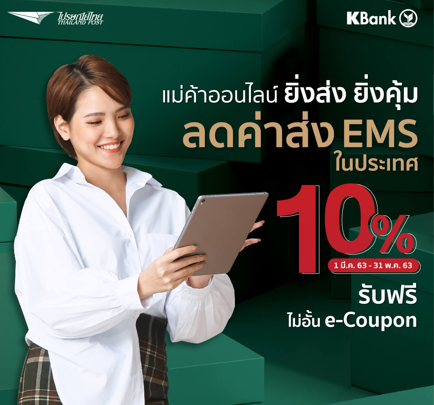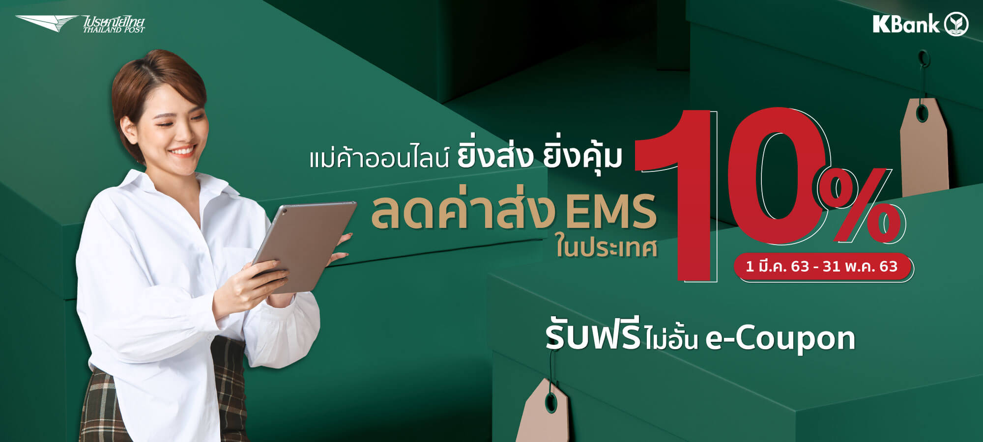 แสดงภาพ e-Coupon นี้เพื่อรับส่วนลด 10% ค่าส่ง EMS ภายในประเทศที่ไปรษณีย์ไทยทุกสาขา