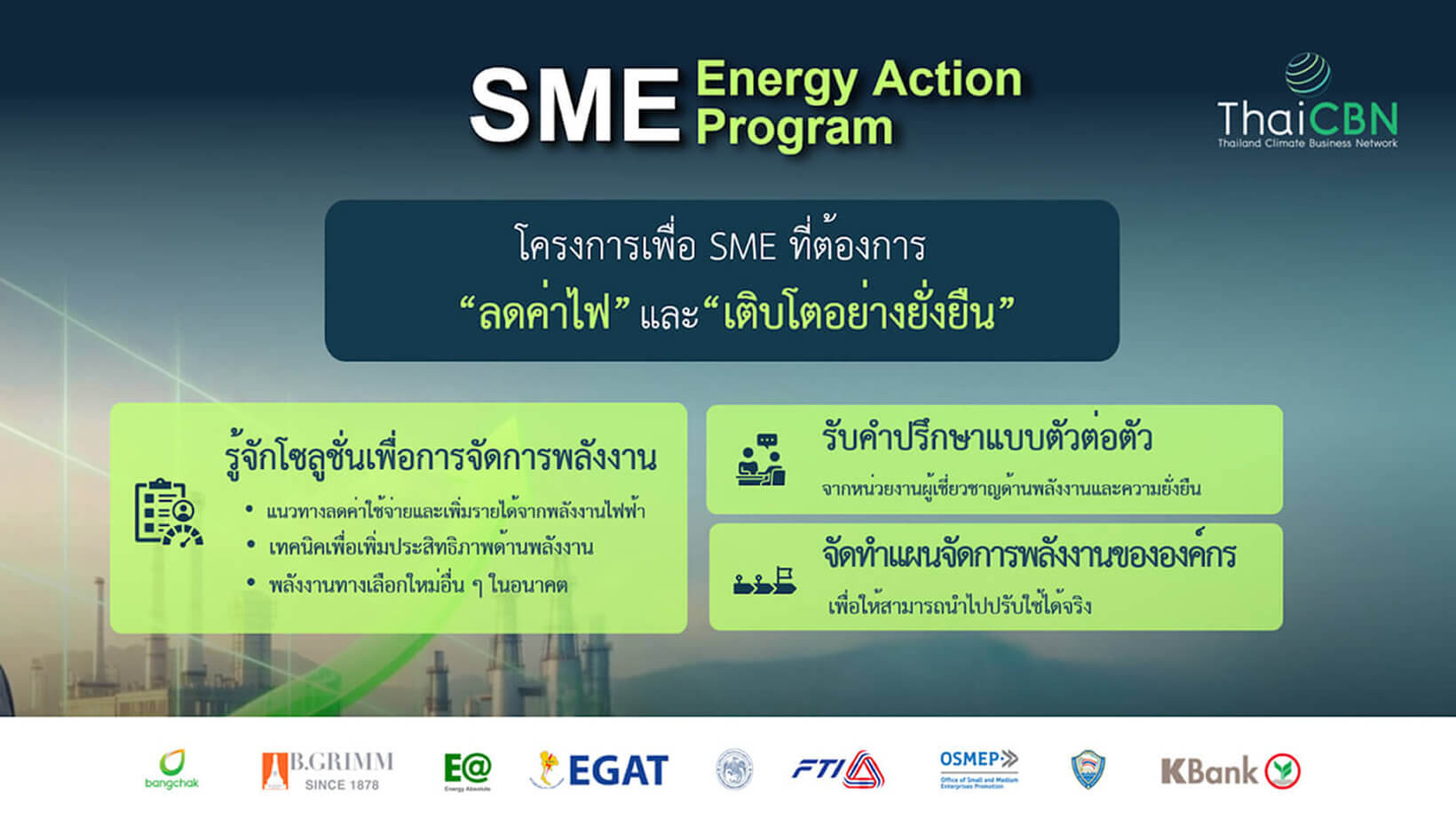 เครือข่ายฯ ThaiCBN เปิดรับสมัคร SME Energy Action Program เสริมศักยภาพธุรกิจ ลดต้นทุนพลังงาน พร้อมโอกาสเข้าถึงพลังงานสะอาด