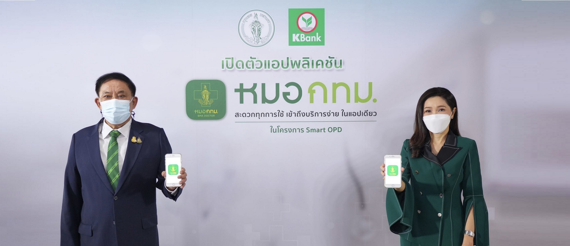 The Bangkok Metropolitan Administration (BMA) and KASIKORNBANK (KBank) have jointly unveiled the “BMA Doctor” application under the “Smart OPD” project that allows users to access medical services at all 11 hospitals under the Medical Service Department, Bangkok Metropolitan Administration, by simply downloading a single app. Thanks to this technological advancement, the initiative will enhance healthcare services in the ‘new normal’ era as patients will have improved access to medical services while also receiving emergency care in a timely manner. The app will help ease the burdens of healthcare personnel in providing services to more than 4 million outpatients per year. Members of the public are invited to download the “BMA Doctor” app today, while medical services at all 11 affiliated hospitals will be completely rolled out via this app by the end of March 2022.