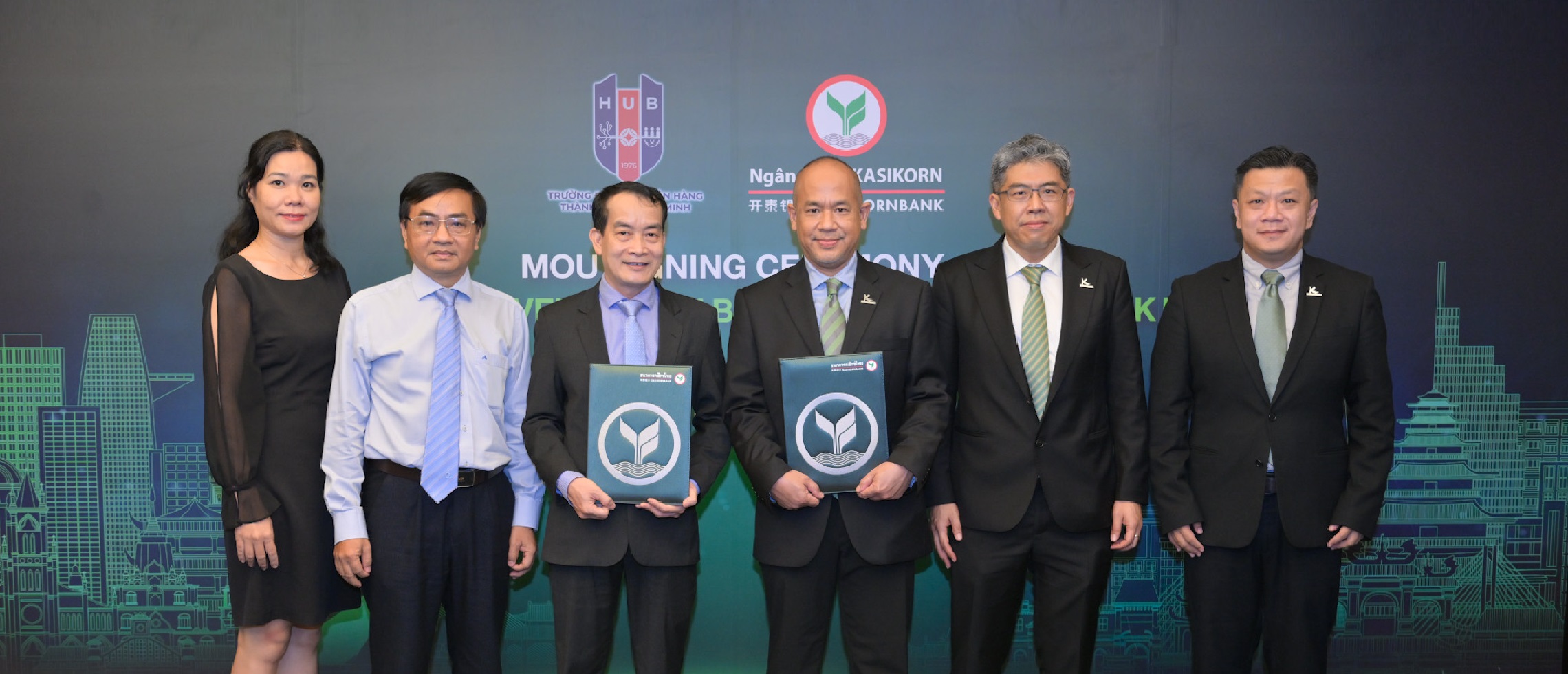 In alignment with HO CHI MINH UNIVERSITY OF BANKING (HUB)’s visions and KASIKORNBANK’s strategic direction, the MoU places emphasis on two areas: 1) HUB’s digital transformation drive, with the aim of creating a seamless digital experience for students and personnel in order to enhance HUB’s operational efficiency, and (2) human resource development by promoting academic activities such as internship programs for students to gain valuable experience in real working environments, and the career development program, which will help students explore potential career paths.