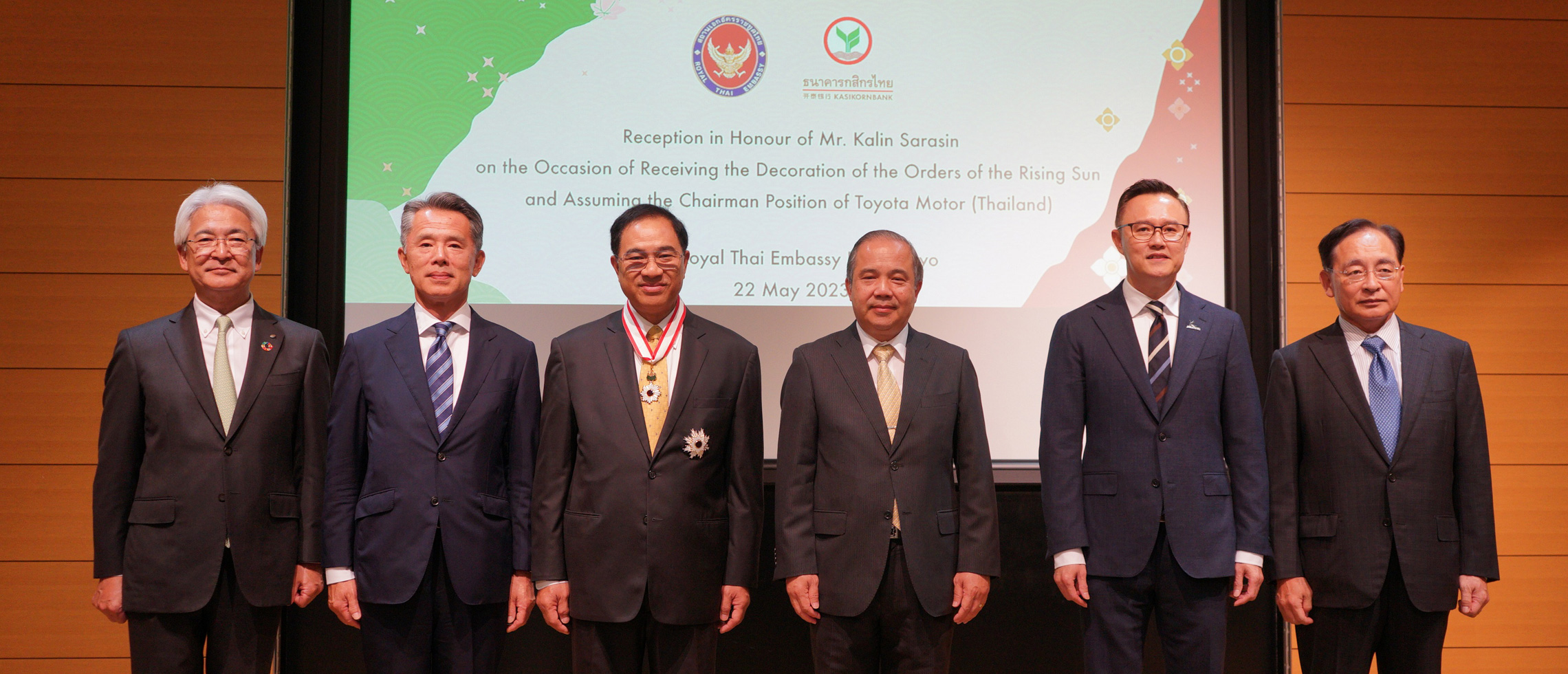 “The Order of the Rising Sun, Gold and Silver Star" is the highest decoration that the Japanese government can bestow upon private individuals. It is awarded to those who played important roles in fostering good relationships, both in economic and legal matters, between Thailand and Japan. Mr. Sarasin has worked diligently over the years to build strong relationships with businesspersons and the Japanese government. He has been actively involved in the Thai-Japanese Association for more than 30 years and has held significant positions in prominent organizations such as the Thai Chamber of Commerce, the Board of Trade of Thailand, and many others involved in Thai-Japanese relations. Notably, he recently assumed the esteemed position of Chairman of Toyota Motor Thailand Co., Ltd.