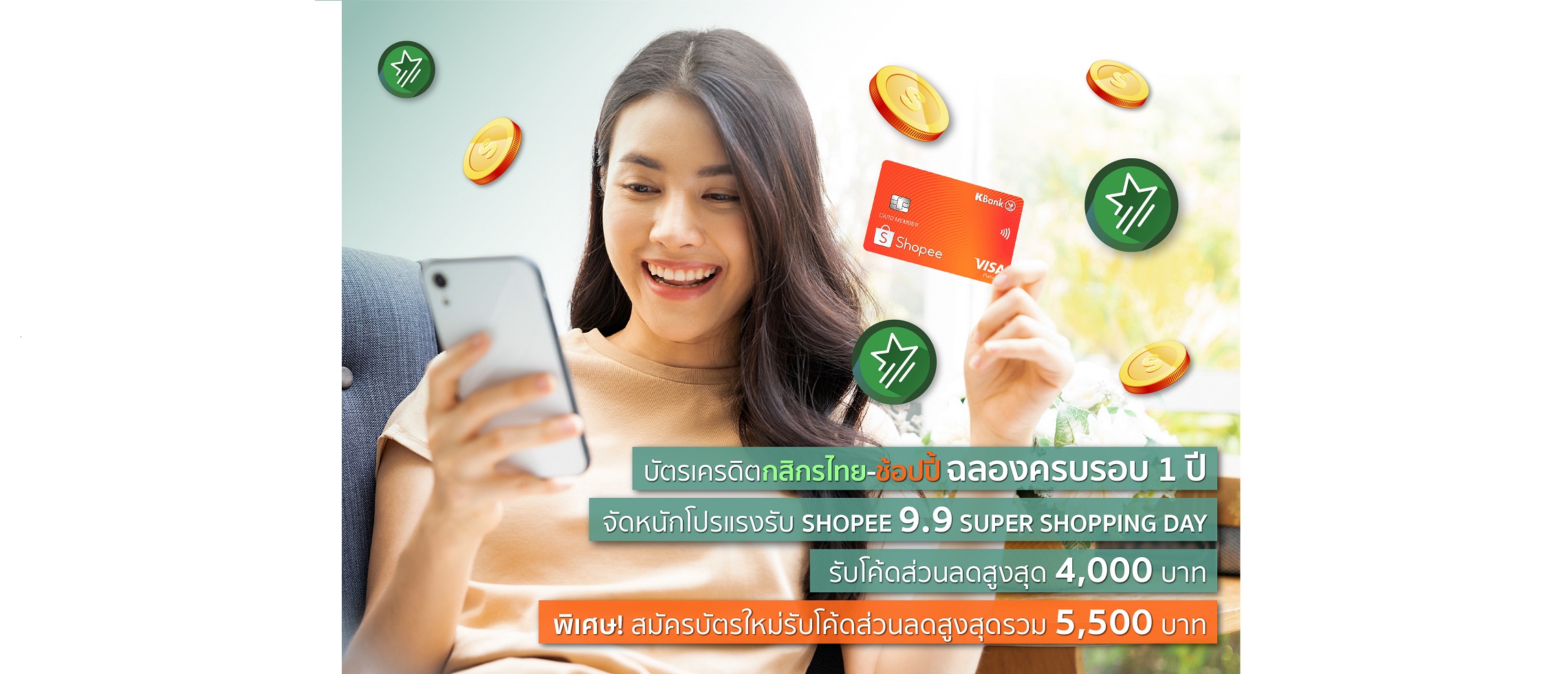 To celebrate the first anniversary of the KBank-Shopee Credit Card, KASIKORNBANK (KBank) and Shopee have jointly launched a promotional campaign under the “Best Value” concept that allows customers to shop to the fullest during the Shopee 9.9 Super Shopping Day festival from August 26 to September 9, 2021. New customers will get Shopee vouchers valued at up to 5,500 Baht, while existing clients can earn 10x K Points, 1-percent cash back in the form of Shopee Coins for every purchase via Shopee, and Shopee vouchers worth up to 4,000 Baht. Get ready to go shopping with Shopee!