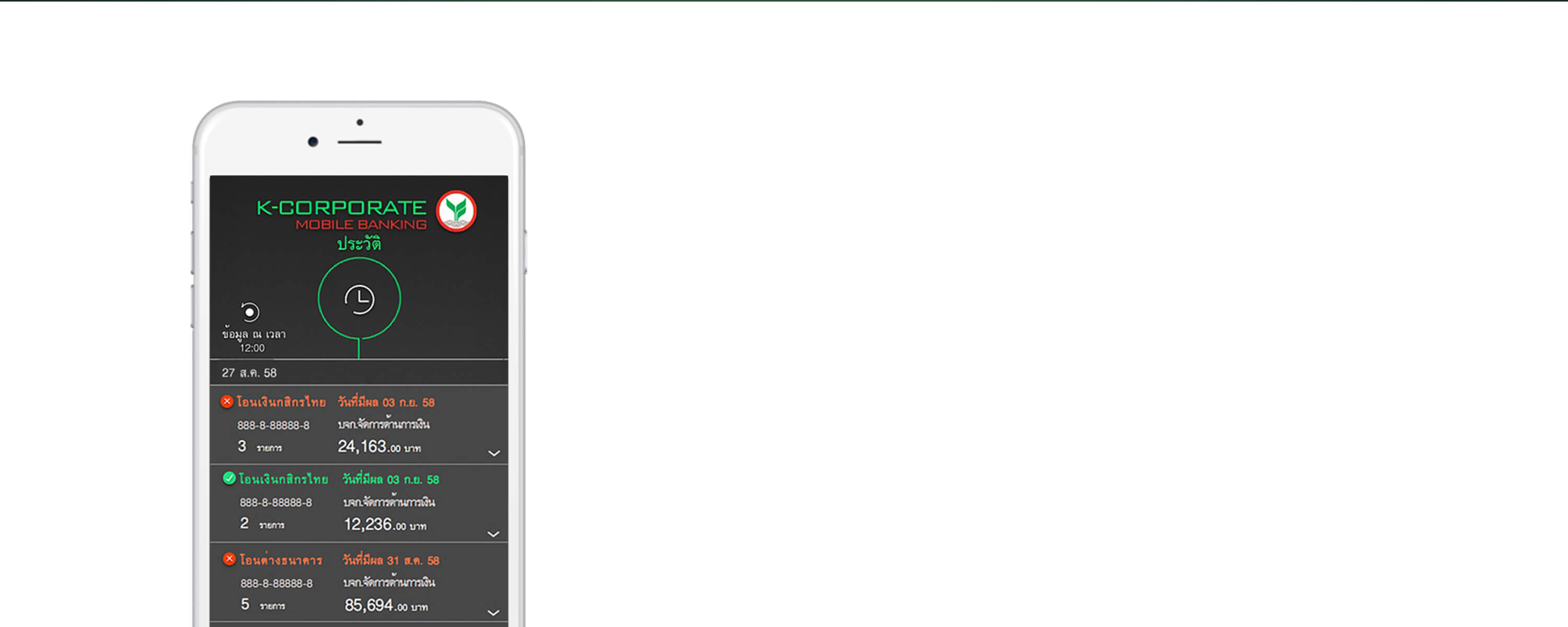 K-Corporate Mobile Banking helps you keep track with your outstanding balances, available balances, including approved / rejected transactions.