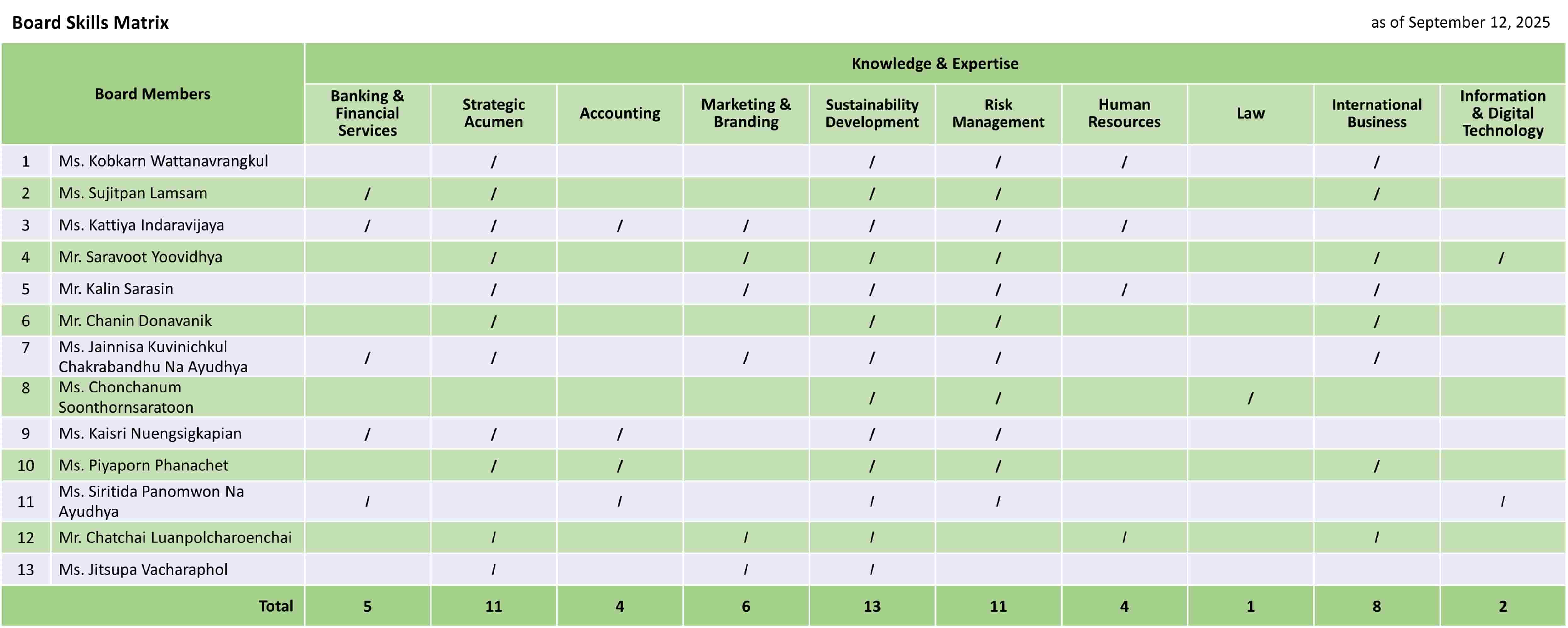 comprises persons of wide range of knowledge, competence, skills and experience that commensurate with KBank’s
