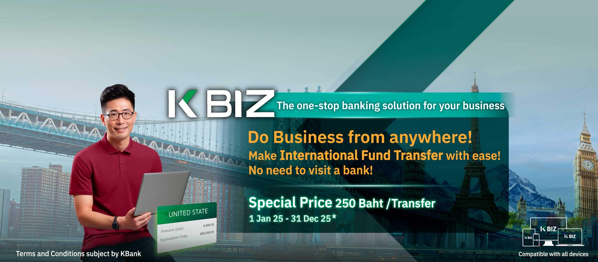 - The promotion fee is valid only for customers making international fund transfer via K BIZ.