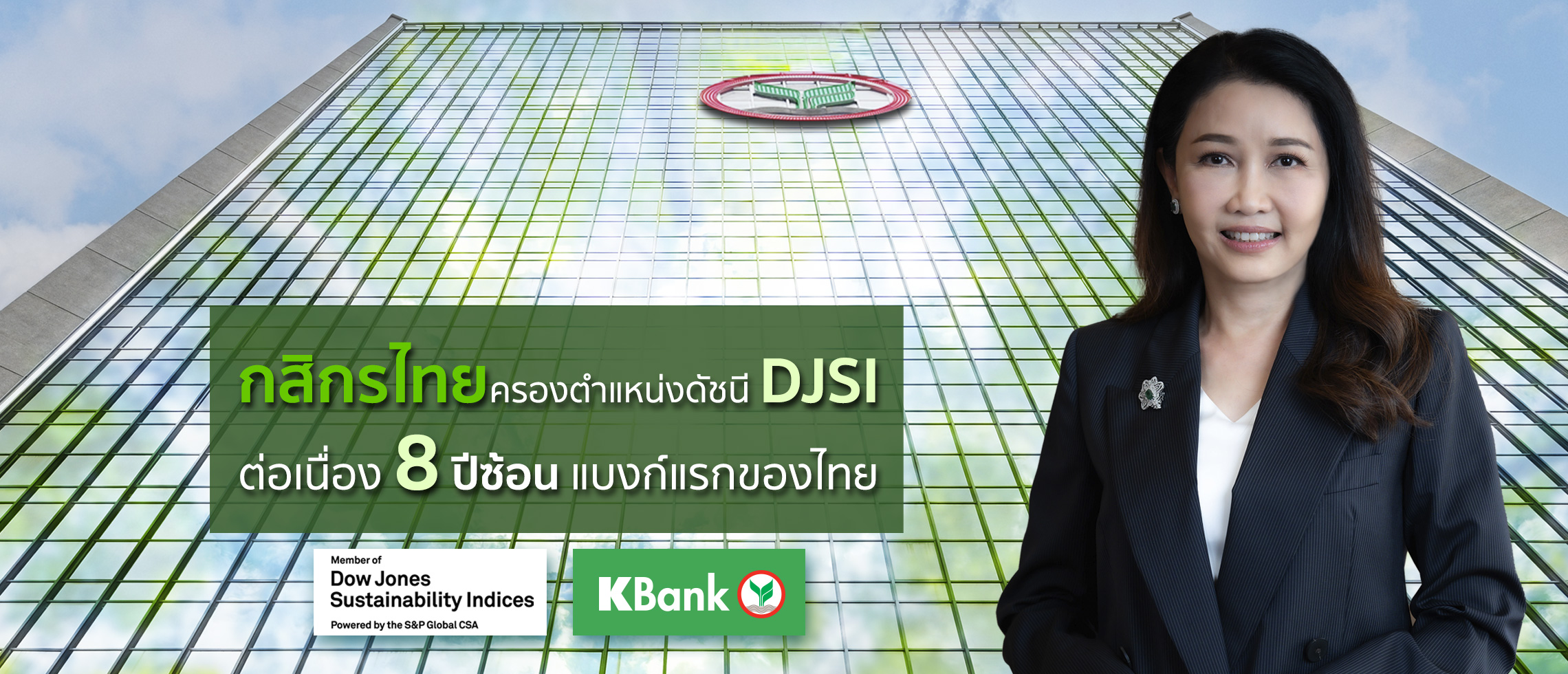 Ms. Kattiya Indaravijaya, KBank Chief Executive Officer, said, “KBank is committed to advancing our business on ESG principles. We have formulated a strategy that prioritizes systematic work with performance-based measurement while developing our operations in accordance with international principles and standards. The Bank aims to become an ESG leader among banks in Southeast Asia, helping our customers and Thai businesses to achieve a shared goal as we move towards a sustainable economic system. These endeavors have continually benefited our ESG performance in a concrete manner. In 2023, KBank has been selected for inclusion in the internationally recognized Dow Jones Sustainability Indices (DJSI) 2023, both in the DJSI World and DJSI Emerging Markets Indices. This is the eighth consecutive year (2016-2023) that KBank has been included in the DJSI, making it the first Thai bank to do so."