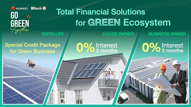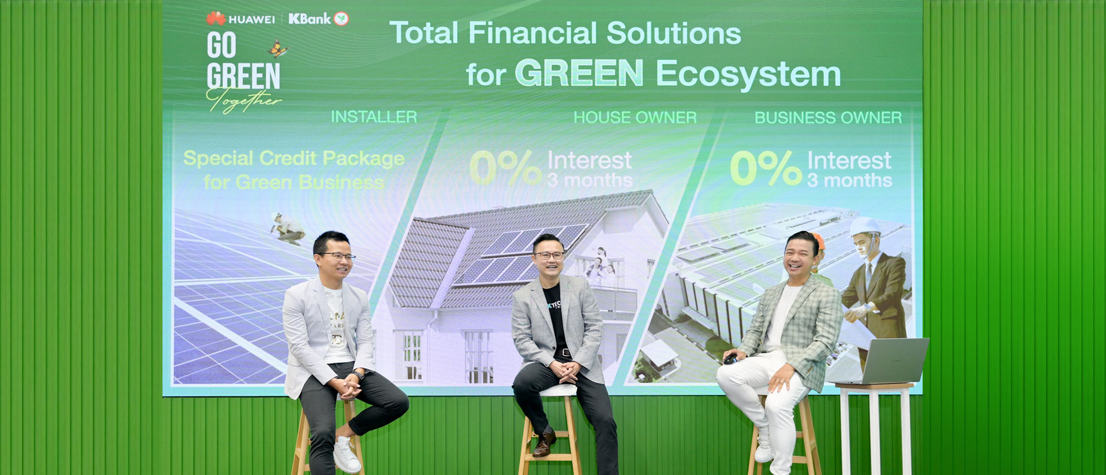 The collaboration between KBank and Huawei, the leading digital power supplier with a network of highly specialized solar rooftop installers, will bring both financial assistance and innovative products to support the green ecosystem from upstream to downstream, including solar rooftop contractors, homeowners, and business owners. By taking these collaborative actions to save the world, each household can save up to 36,000 Thai Baht annually on electric bills after deploying 5kW solar rooftop installations at home.