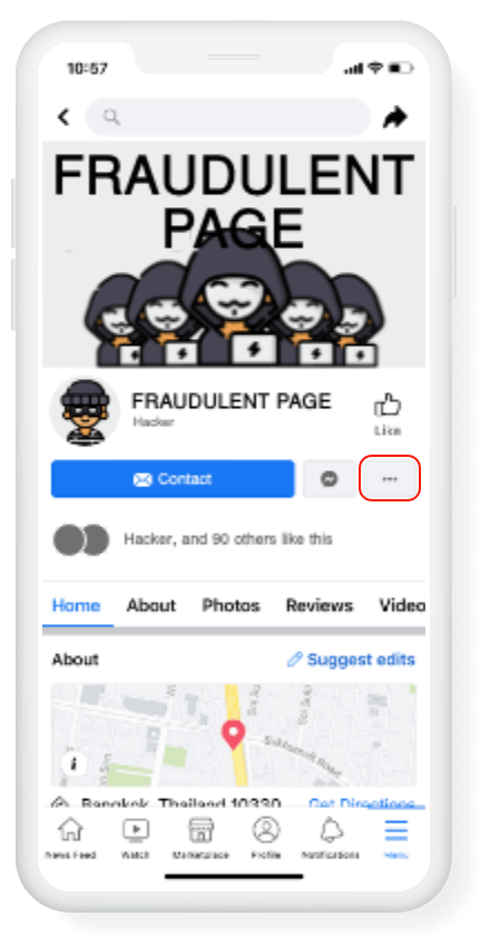 to request an examination and have the fake account deleted. Go to the fraudulent page -> three dots (...) button -> 'Find Support or Report Page'.