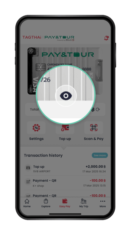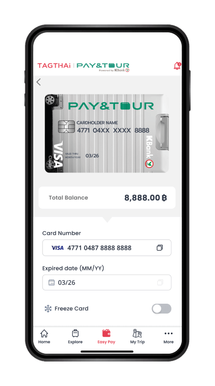 Pay Like a Local - You can enjoy spending at any store from department store to street food shops and seamlessly pay via the PAY & TOUR prepaid card at any store that accepts Visa. To scan and pay with QR payment, you can link your card with the TAGTHAi app. This also allow you to easily check your card balance and track your transaction history, so you can enjoy spending without going over your budget.