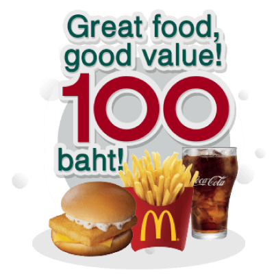 - This promotion can be used at participating McDonald’s branches only, with the exception of those located at all airports, IMPACT Muang Thong Thani, IMPACT Challenger, The EmQuartier, Phi Phi Island, The Mall Ngamwongwan, The Mall Tha Phra 2, The Mall Bangkapi 2, The Mall Bangkae 2, The Mall Korat 2, all BTS stations, Dessert Centers, or services via McDelivery and Drive-Thru Service.