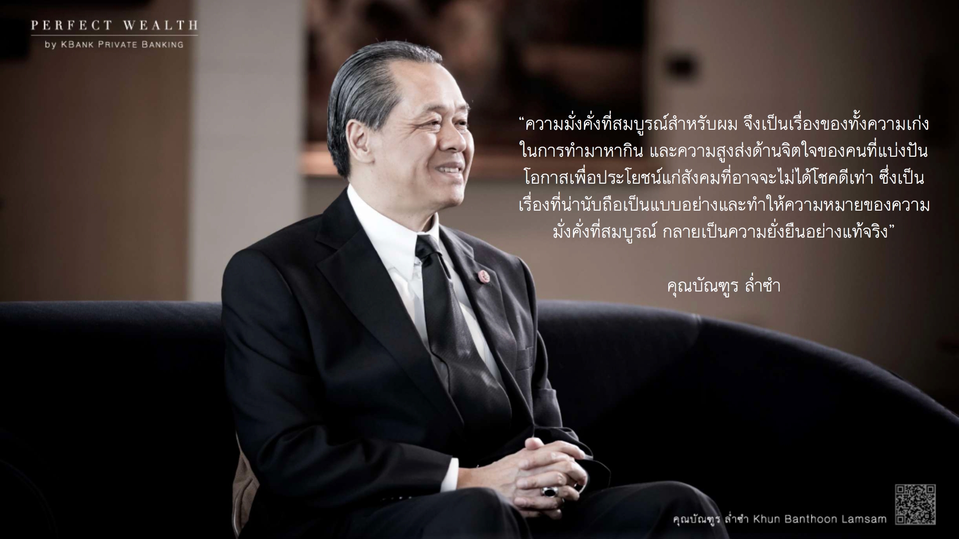KBank Private Banking is determined to deliver services that meet wealth-related needs and create happiness for our most valued clients. Our mission is to allow you to have a worry-free life in accordance with your personal definition of “Perfect Wealth”. Come find inspirational stories from highly successful individuals who have established their own Perfect Wealth are included below.