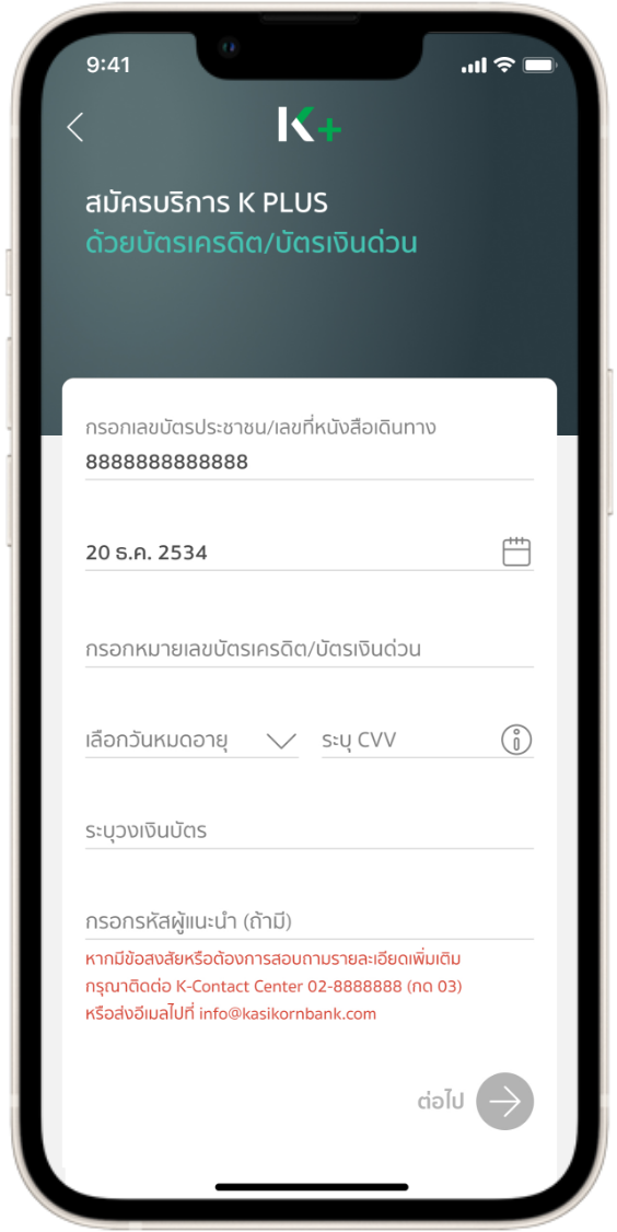 บัตรดิจิทัล เดอะเซียร่ากสิกรไทย ณ จุดให้บริการ