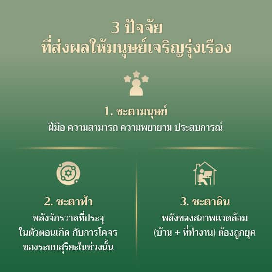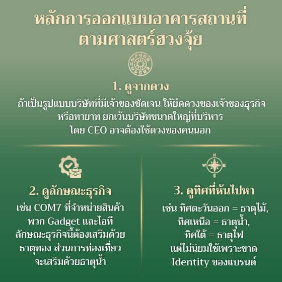 “ฮวงจุ้ยเป็นเรื่องเฉพาะบุคคล เหมือนเวลาเราไปซื้อสูท ต้องเลือกซื้อหรือตัดสูทที่เข้ากับตัวเรามากที่สุด เวลาดูฮวงจุ้ยก็จะเริ่มดูจากพื้นดวงของเราก่อน พื้นดวงดีจะได้รับโอกาสจากชะตาฟ้าส่งเสริม แต่หากดวงชะตาฟ้าไม่เอื้อ พลังของสภาพแวดล้อมจะเป็นตัวช่วยที่ดี หากรู้วิธีจัดสมดุลพลังงานรอบตัวซึ่งก็คือฮวงจุ้ยนั่นเอง”