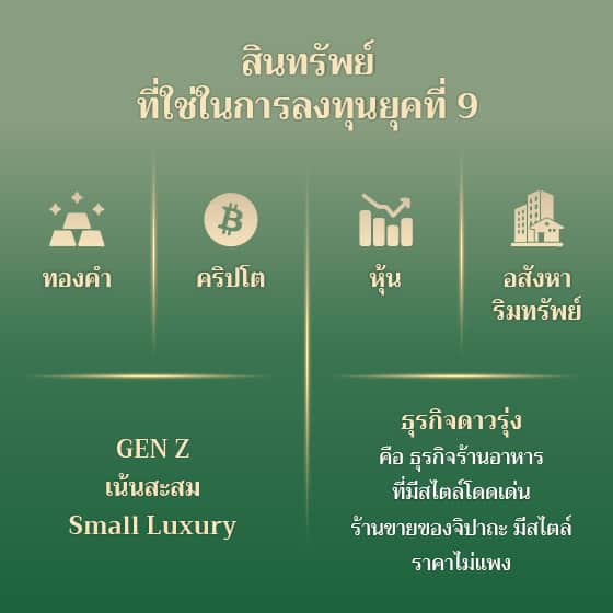 “แต่โลกยังคงต้องดำเนินต่อไป ความเปลี่ยนแปลงที่จะเกิดขึ้นอย่างรวดเร็ว คือเทคโนโลยี AI ที่จะทรานสฟอร์มเป็น Singularity AI เป็นจุดที่ AI ฉลาดคิดอ่านเหนือมนุษย์ และเติบโตแบบสุด ๆ แต่ AI จะไม่ได้แย่งงานคน แต่คนที่ใช้ AI เป็น จะแย่งงานคนอื่น สำหรับเรื่องการลงทุนนั้น ไฟหมายถึงการลงทุน ในยุคที่ 9 นี้สามารถลงทุนและสะสมสินทรัพย์ได้ทุกอย่าง แม้จะมีความผันผวนในแต่ละปี แต่ในระยะยาวมีแต่ดีกับดีและจะเป็นจุดที่ทำให้เราชนะในท้ายที่สุด”
