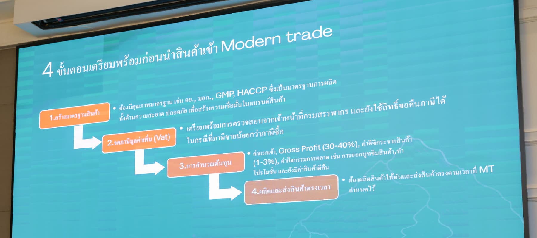 การนำสินค้าเข้าสู่ช่องทาง Modern Trade นั้นไม่ได้เป็นเพียงการส่งมอบสินค้า แต่คือการเข้าสู่ระบบที่มีมาตรฐานและข้อกำหนดที่ซับซ้อน ผู้ประกอบการจึงจำเป็นต้องมีการเตรียมความพร้อมอย่างรอบด้าน ตั้งแต่การสร้างคุณภาพสินค้า ไปจนถึงการบริหารจัดการด้านภาษีและต้นทุนอย่างแม่นยำ เพราะความผิดพลาดเพียงเล็กน้อยอาจส่งผลกระทบต่อผลกำไรและโอกาสในการเติบโตในระยะยาว