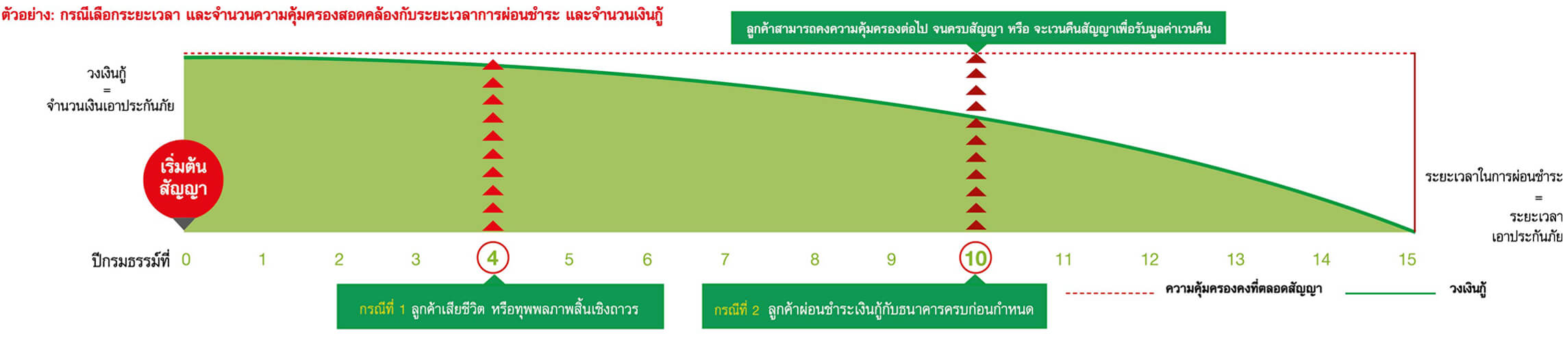 • รูปแบบความคุ้มครองข้างต้นอยู่บนสมมติฐานของลูกค้าที่มีประวัติการชำระเงินกู้เป็นปกติตามสัญญาเงินกู้ของธนาคาร