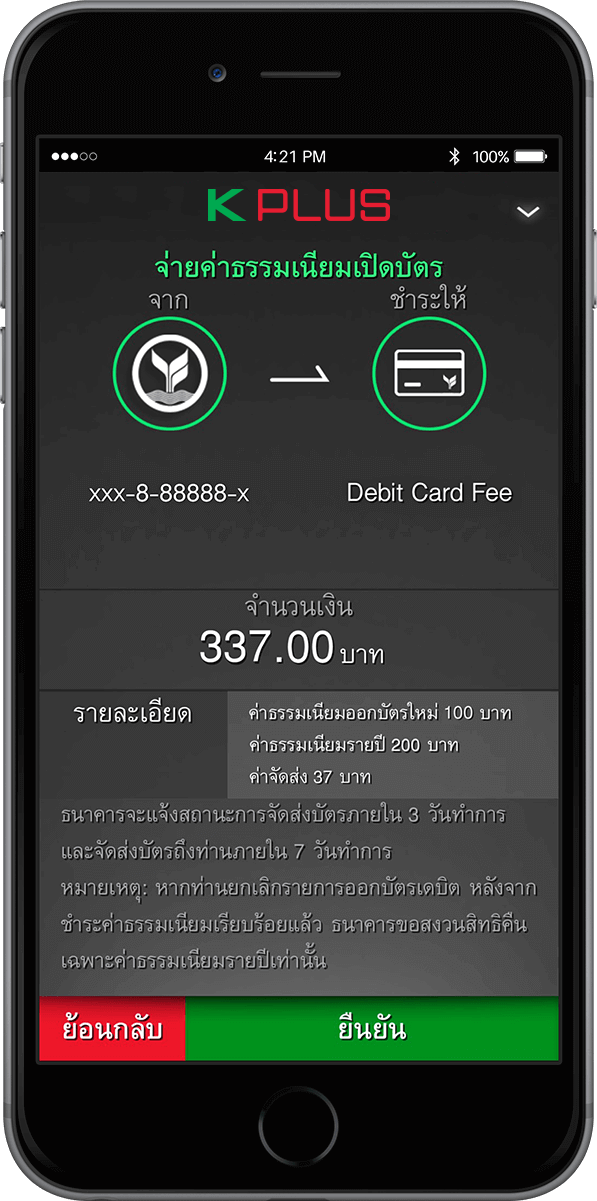 ธนาคารไม่มีค่าใช้จ่ายเพิ่มเติมใดๆที่เรียกเก็บจากลูกค้า ยกเว้นกรณีที่บางร้านค้าเป็นผู้ขอเรียกเก็บค่าบริการเพิ่มเติมจากลูกค้า ซึ่งทางร้านจะแจ้งให้ลูกค้าทราบก่อนทำรายการ