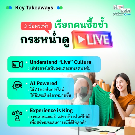 ถึงช่วงที่ยากที่สุดของการไลฟ์อย่างการทำให้คนอยู่ดูต่อไปจนจบ ถือเป็นปัญหาใหญ่ของคนทำ Live Commerce ซึ่งสามารถแก้เกมได้ ดังนี้