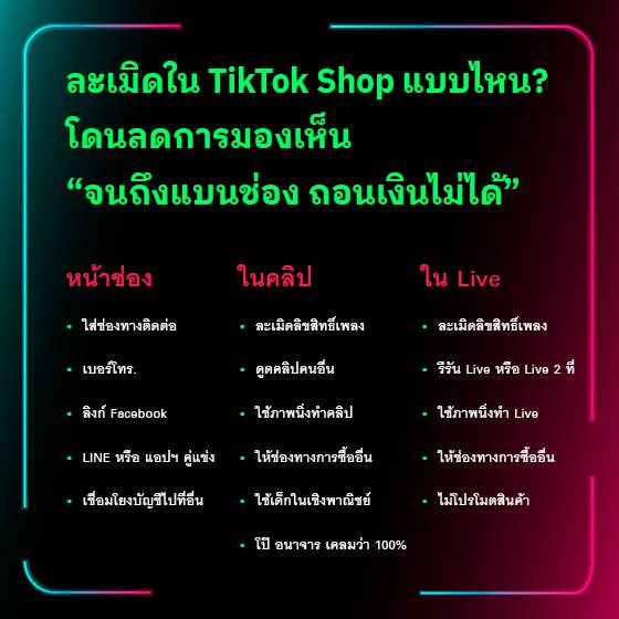หากพูดถึงกฎชุมชน TikTok จะมีอยู่ค่อนข้างมาก แต่สรุปมาให้เข้าใจง่ายๆ กับ 5 เรื่องที่คนมักทำผิดบ่อยครั้ง ได้แก่