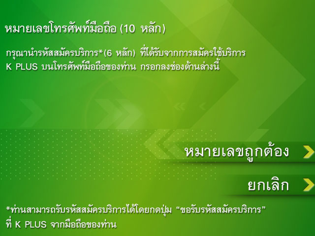10 ใส่หมายเลขโทรศัพท์มือถือ (10 หลัก) ที่ต้องการใช้กับบริการ K PLUS