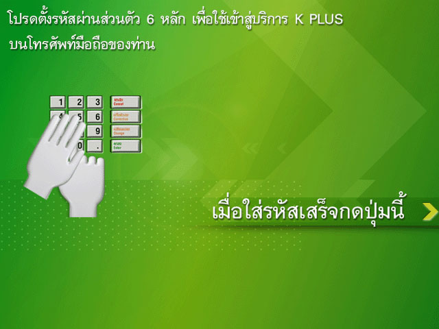 12 ตั้งรหัสผ่านส่วนตัว 6 หลัก เพื่อใช้เข้าสู่ระบบของแอพพลิเคชั่น K PLUS