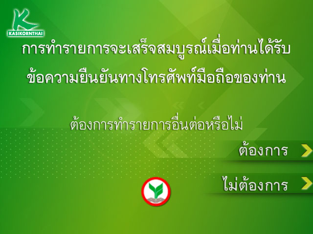 15 ระบบจะแจ้งการทำรายการเสร็จสมบูรณ์ และรอรับข้อความยืนยันได้ทางหมายเลขโทรศัพท์ที่ใช้สมัครบริการ