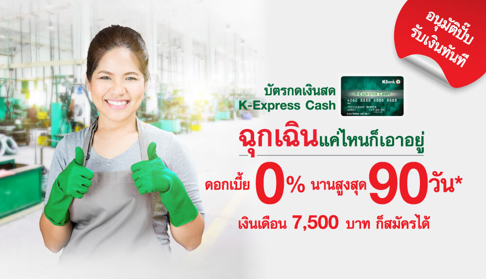 เงื่อนไขโครงการบัตรกดเงินสด K-Express Cash ดอกเบี้ย 0% นานสูงสุด 90 วัน