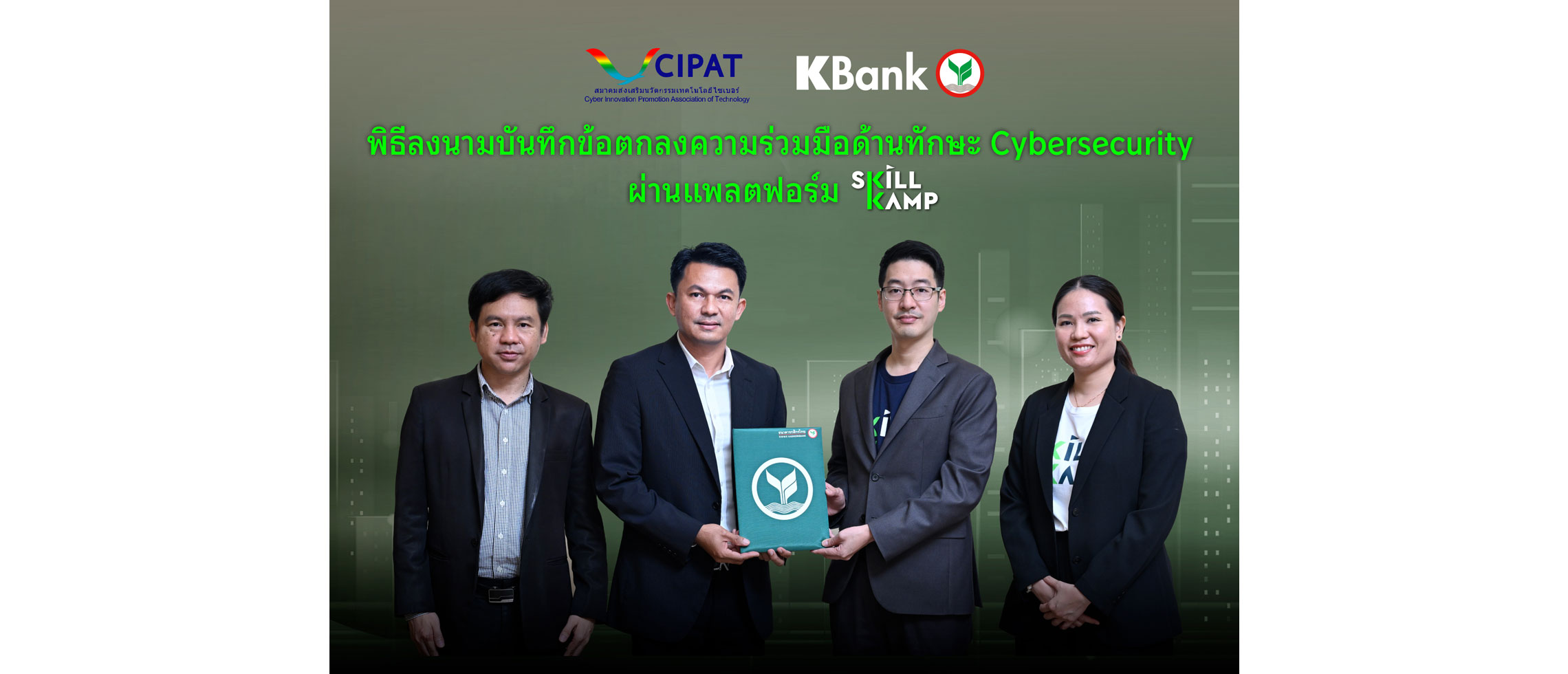 นายสมภพ สันติวัฒนกุล ผู้อำนวยการฝ่าย Corporate Strategy and Innovation ธนาคารกสิกรไทย เปิดเผยว่า การเปลี่ยนแปลงทางเทคโนโลยีและการเข้ามาของ AI ทำให้ชีวิตประจำวันผสานกับโลกดิจิทัลอย่างแยกไม่ออก ขณะเดียวกันภัยไซเบอร์พัฒนาอย่างรวดเร็ว สร้างความเสียหายต่อประชาชนไทยมากกว่า 380,000 เคส คิดเป็นมูลค่าความเสียหายกว่า 25,000 ล้านบาท (ข้อมูลที่สำนักงานตำรวจแห่งชาติเปิดเผยในงานรายงานประจำปีของ Whoscall ปี 2568) แม้แนวโน้มการป้องกันจะดีขึ้น แต่รูปแบบการโจมตีใหม่ ๆ ยังเกิดขึ้นต่อเนื่องและสามารถกระทบได้กับคนทุกช่วงวัย เพื่อรับมือกับภัยไซเบอร์ที่ทวีความซับซ้อนมากขึ้น สกิลแคมป์ (SKILLKAMP) โดยธนาคารกสิกรไทย แพลตฟอร์มพัฒนาทักษะวิชาชีพแห่งอนาคต สำหรับคนทำงานรุ่นใหม่ จับมือร่วมกับ สมาคมส่งเสริมนวัตกรรมเทคโนโลยีไซเบอร์ (Cyber Innovation Promotion Association of Technology: CIPAT) ลงนามบันทึกข้อตกลงความร่วมมือด้านทักษะ Cybersecurity เปิดตัวโครงการ Cybersecurity BootKamp หลักสูตรพื้นฐานของการรักษาความปลอดภัยไซเบอร์ ระยะเวลาคอร์สเรียนตั้งแต่วันที่ 13 มิถุนายน - 8 สิงหาคม 2569 ที่เน้นการลงมือปฏิบัติจริงด้านความมั่นคงปลอดภัยไซเบอร์ เพื่อยกระดับศักยภาพบุคลากร และพัฒนาทักษะใหม่ให้เป็นที่ต้องการของตลาดแรงงานในหลากหลายอุตสาหกรรม โดยโครงการนี้ถูกออกแบบมาเพื่อให้เหมาะสำหรับผู้ที่สนใจสายงาน Cybersecurity โดยเน้นการเรียนรู้ในรูปแบบ Hybrid Learning Model ผสานการเรียนออนไลน์และออฟไลน์อย่างเป็นระบบ ครอบคลุมระดับพื้นฐาน เพื่อสร้างเครือข่ายผู้เชี่ยวชาญคุณภาพสูง ส่งเสริมการพัฒนาทักษะเชิงลึก สร้างพื้นที่ระดมไอเดียและนวัตกรรม รวมถึงสนับสนุนบุคลากรที่มีศักยภาพโดดเด่นสู่การทำงานจริงอย่างมีประสิทธิภาพต่อไป