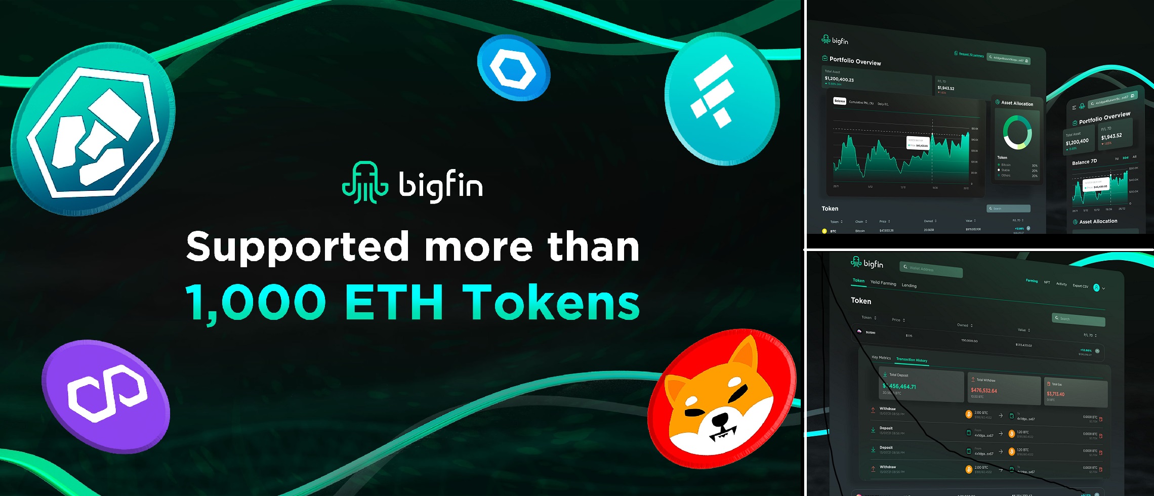 ปัจจุบัน แพลตฟอร์ม Bigfin คัดเลือกคริปโทเคอร์เรนซีและสินทรัพย์ดิจิทัลที่มี Market Capitalization สูงที่สุด 1,000 อันดับแรกบน Ethereum Chain มาแสดง และจะมีการเพิ่มเติมสินทรัพย์จาก Ethereum Chain รวมถึงการเชื่อมต่อกับเครือข่าย Blockchain อื่นๆ และ ศูนย์ซื้อขายสินทรัพย์ดิจิทัลแบบ Centralized อีกทั้งจะมีการพัฒนาฟีเจอร์ที่เป็นประโยชน์อย่างต่อเนื่อง อาทิ ระบบแจ้งเตือนเมื่อมูลค่าพอร์ตเปลี่ยนแปลงไปยังระดับที่กำหนดไว้ การนำเสนอองค์ความรู้ใหม่ๆ ในการวิเคราะห์ข้อมูลธุรกรรมบนบล็อกเชน เป็นต้น