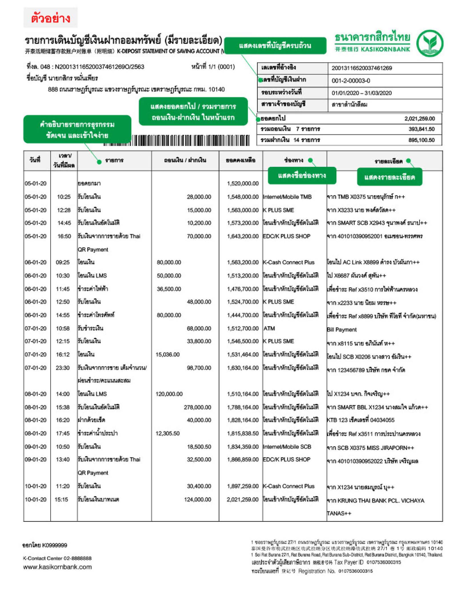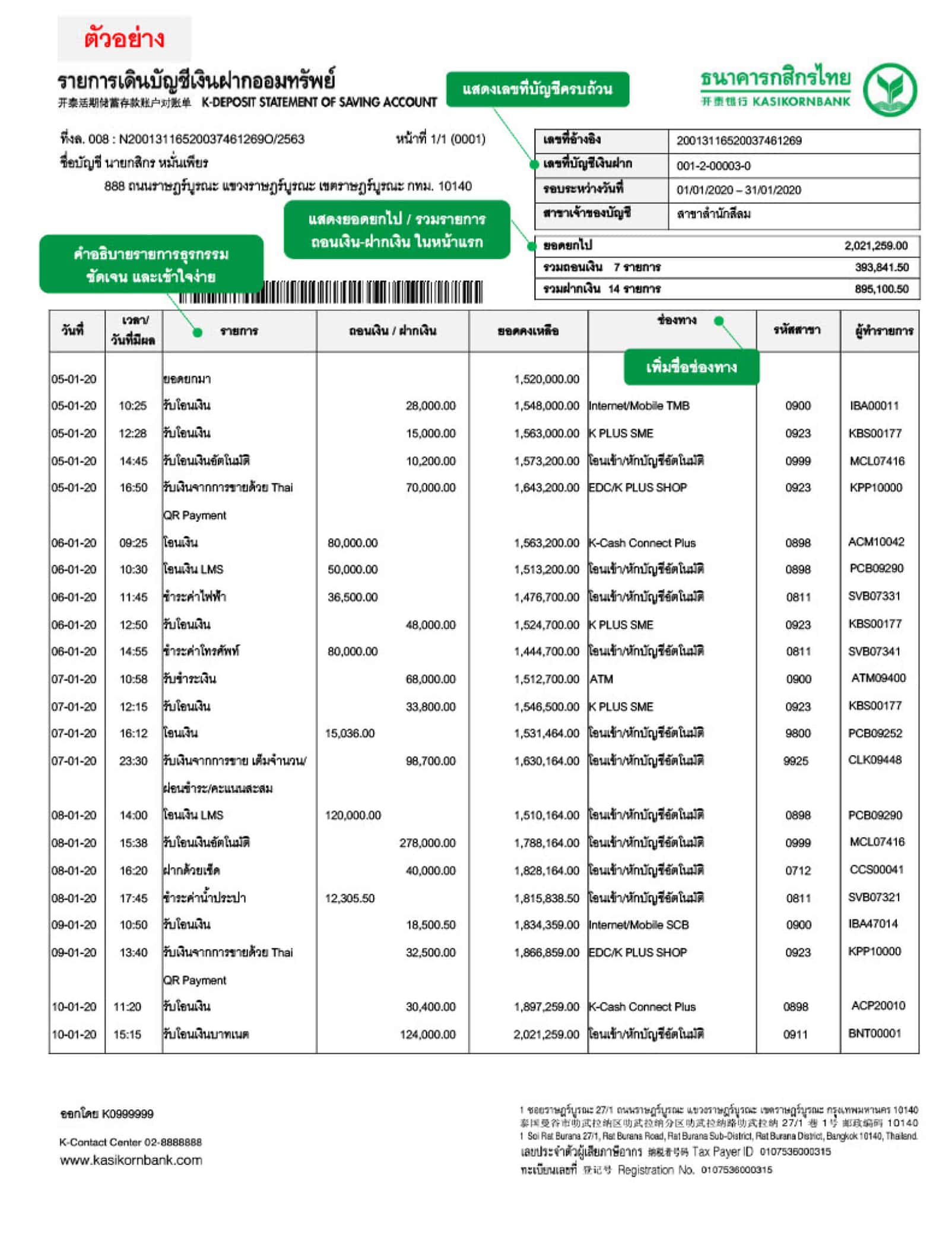 รายการเดินบัญชีเงินฝาก (แบบไม่มีรายละเอียด) Official Statement