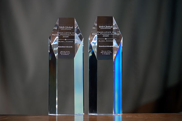 ​       ล่าสุดธนาคารได้รับ 2 รางวัลจากเวทีระดับโลก The Asian Banker (TAB) Global Excellence in Retail Finance Awards 2026 ในสาขารางวัลธนาคารยอดเยี่ยมกลุ่มลูกค้ารายย่อย (Best Retail Bank in Thailand 2026) ต่อเนื่องเป็นปีที่ 17 จากความโดดเด่นในการพัฒนาบริการที่ตอบโจทย์และช่วยยกระดับประสบการณ์การใช้บริการให้กับลูกค้า ซึ่งสะท้อนความเป็นผู้นำด้านดิจิทัลและนวัตกรรมทางการเงิน และรางวัลธนาคารยอดเยี่ยมกลุ่มผู้ประกอบการ SME (Best SME Bank in Thailand 2026) ตอกย้ำความเป็นผู้นำในการสนับสนุนผู้ประกอบการ SME ด้วยโซลูชันทางการเงินที่ครบวงจร และตอบโจทย์การเติบโตอย่างยั่งยืน ซึ่งรางวัลพิจารณาโดยคณะกรรมการผู้ทรงคุณวุฒิระดับนานาชาติ ผ่านเกณฑ์การประเมินที่เข้มข้น ครอบคลุมทั้งผลการดำเนินงาน นวัตกรรม และศักยภาพด้านดิจิทัล สะท้อนมาตรฐานระดับโลกของสถาบันการเงินชั้นนำ ธนาคารกสิกรไทยมุ่งมั่นพัฒนานวัตกรรมทางการเงินอย่างต่อเนื่อง เพื่อสร้างคุณค่าให้ลูกค้าทั้งรายย่อยและ SME ซึ่งเป็นรากฐานสำคัญของเศรษฐกิจไทย พร้อมยกระดับประสบการณ์ลูกค้า และสร้างโอกาสใหม่ทางธุรกิจ สู่การขับเคลื่อนเศรษฐกิจไทยให้เติบโตอย่างยั่งยืนต่อไป