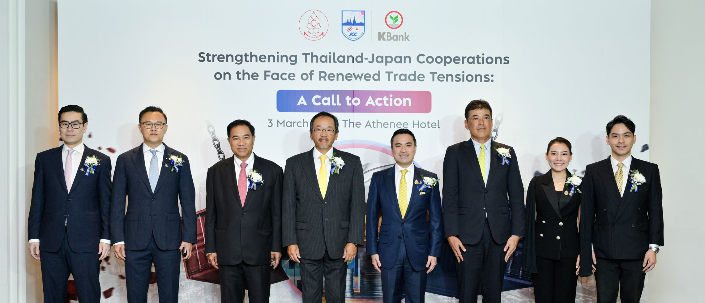 ธนาคารกสิกรไทย ร่วมกับ สมาคมไทย-ญี่ปุ่น (TJA) และหอการค้าญี่ปุ่น-กรุงเทพฯ จัดงานสัมมนา "Strengthening Thailand-Japan Cooperation on the Face of Renewed Trade Tensions" เพื่อเป็นโอกาสให้ผู้ประกอบการไทย-ญี่ปุ่นได้ยกระดับความร่วมมือในการเผชิญกับความไม่แน่นอนทางการค้าและภูมิรัฐศาสตร์ทั่วโลก และเน้นย้ำถึงความมุ่งมั่นของรัฐบาลไทยในการสนับสนุนธุรกิจญี่ปุ่นในประเทศไทยตลอดจนแลกเปลี่ยนมุมมองทางธุรกิจ ด้านศูนย์วิจัยกสิกรไทยมองว่า บริษัทญี่ปุ่นมีศักยภาพในการขยายการลงทุนและสร้างการเติบโตในหลากหลายภาคส่วน โดยเฉพาะในอุตสาหกรรมเทคโนโลยีขั้นสูง ทำให้นักลงทุนและธุรกิจญี่ปุ่นในประเทศไทยกำลังเผชิญทั้งโอกาสและความท้าทายที่สำคัญ โดยธนาคารกสิกรไทยพร้อมสนับสนุนภาคธุรกิจไทยและญี่ปุ่น ในการปรับตัวรับความเปลี่ยนแปลงที่รวดเร็ว ผ่านบริการทางการเงินที่หลากหลาย การให้คำปรึกษา รวมทั้งการเชื่อมต่อภูมิภาค AEC+3
