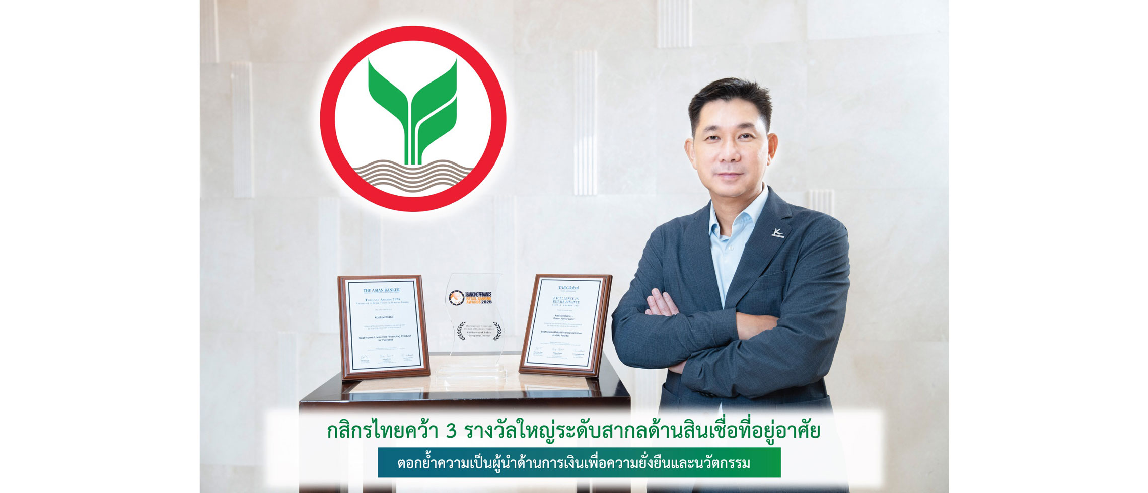 ธนาคารกสิกรไทยตอกย้ำความเป็นผู้นำด้านสินเชื่อที่อยู่อาศัยคุณภาพ ที่สามารถตอบสนองความต้องการของลูกค้าที่หลากหลายได้อย่างเต็มศักยภาพและยั่งยืน ประสบความสำเร็จครั้งสำคัญ คว้า 3 รางวัลยอดเยี่ยมระดับสากล โดย บริการสินเชื่อบ้านสีเขียว (KBank Green Home Loan) คว้ารางวัล Best Green Finance Initiative จากนิตยสาร The Asian Banker และรางวัล Mortgage and Home Loan Product of the Year จากนิตยสาร Asian Banking & Finance และบริการสินเชื่อบ้านช่วยได้ (Home to Cash) ครองรางวัล Best Home Loan and Financing Product in Thailand จากนิตยสาร The Asian Banker ยกระดับสินเชื่อที่อยู่อาศัยให้เป็นมากกว่าการปล่อยกู้ แต่เป็นการสร้างคุณค่าร่วมกันกับสังคมและสิ่งแวดล้อม