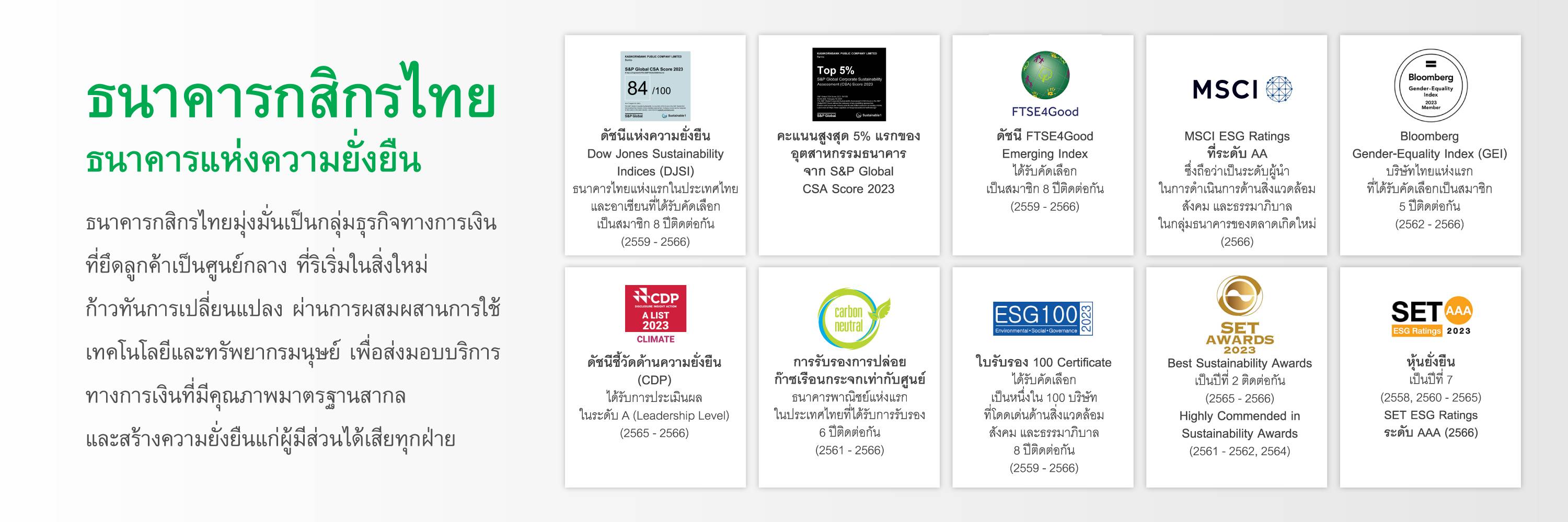 ธนาคารกสิกรไทยมุ่งมั่นเป็นกลุ่มธุรกิจทางการเงินที่ยึดลูกค้าเป็นศูนย์กลาง ที่ริเริ่มในสิ่งใหม่ ก้าวทันการเปลี่ยนแปลง ผ่านการผสมผสานการใช้เทคโนโลยีและทรัพยากรมนุษย์ เพื่อส่งมอบบริการทางการเงินที่มีคุณภาพมาตรฐานสากล และสร้างความยั่งยืนแก่ผู้มีส่วนได้เสียทุกฝ่าย