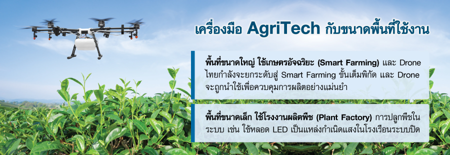 การใช้เครื่องมือของ AgriTech ให้มีประสิทธิผลที่ดีที่สุด ควรใช้เครื่องมือตามขนาดพื้นที่ทางการเกษตร โดยจะแบ่งเป็น พื้นที่ขนาดใหญ่ และพื้นที่ขนาดเล็ก