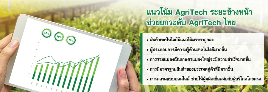 เชื่อว่าแนวโน้ม AgriTech ในระยะข้างหน้าจากนี้ ผู้ประกอบการจะสามารถเข้าถึง AgriTech ได้ง่ายขึ้นด้วยปัจจัยหนุนต่างๆ