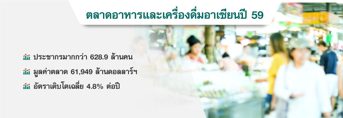 อาเซียนเป็นหนึ่งในเป้าหมายสำคัญของอุตสาหกรรมอาหารและเครื่องดื่ม ส่งผลให้ผู้ประกอบการในตลาดแข่งขันกันพัฒนาผลิตภัณฑ์เพื่อตอบสนองความต้องการของผู้บริโภคมากขึ้น อย่างไรก็ตาม ผู้บริโภคในแต่ละประเทศมีพฤติกรรมการบริโภคอาหารและเครื่องดื่มที่แตกต่างกัน โดยส่วนใหญ่แปรผันไปตามสภาพเศรษฐกิจและสังคม รวมถึงวัฒนธรรมการบริโภคของผู้คนในแต่ละพื้นที่ ดังนั้น ผู้ประกอบการผลิตอาหารและเครื่องดื่มของไทยโดยเฉพาะผู้ประกอบการ SME ควรศึกษาและทำความเข้าใจลักษณะของผู้บริโภคในอาเซียน เพื่อให้สามารถสร้างสรรค์ผลิตภัณฑ์มาตอบโจทย์ความต้องการของผู้บริโภคและเข้าไปแข่งขันในตลาดได้
