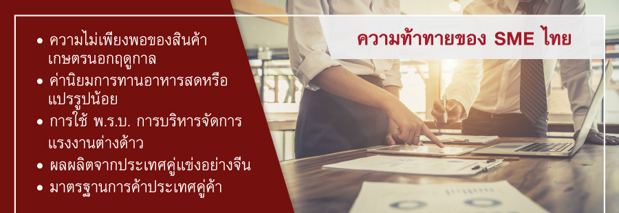 กระแสความต้องการผลิตภัณฑ์สินค้าเกษตรแปรรูปของผู้บริโภค ความชื่นชอบในรสชาติผลไม้ของไทย และการสนับสนุนของรัฐบาลผ่านโครงการต่างๆ จะเป็นแรงกระตุ้นให้ผู้ประกอบการไทยเร่งพัฒนาผลิตภัณฑ์ของตนให้มีคุณภาพและตอบโจทย์ความต้องการของผู้บริโภค อย่างไรก็ตาม ผู้ประกอบการไทยอาจต้องเผชิญความท้าทายในการประกอบธุรกิจจากหลากหลายปัจจัย