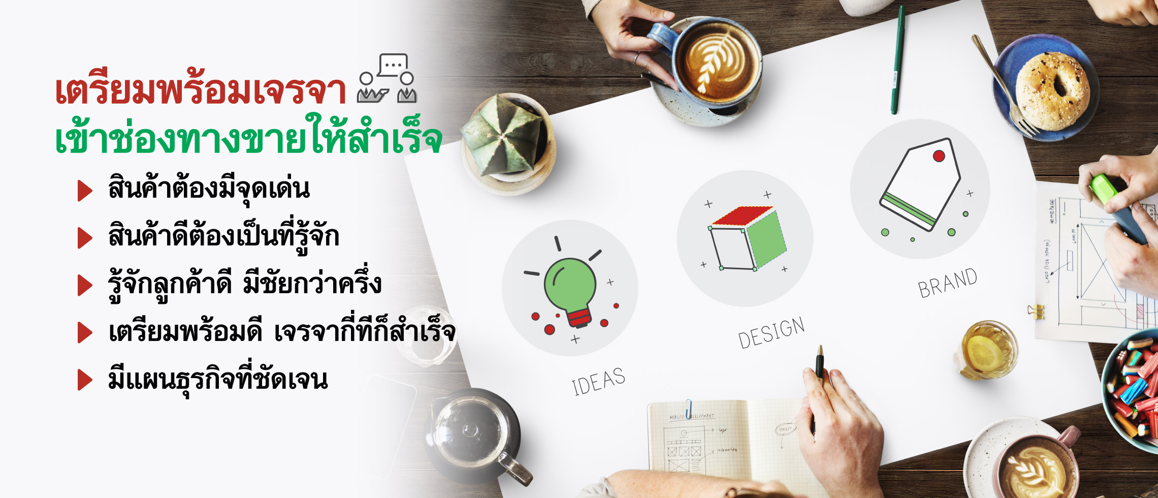 4. เตรียมพร้อมดี เจรจากี่ทีก็สำเร็จ การเตรียมความพร้อมก่อนการเข้าไปเจรจาจับคู่ธุรกิจกับช่องทางค้าปลีกชื่อดังต่างๆ เป็นเรื่องสำคัญ เช่น เตรียมข้อมูลธุรกิจของคุณอย่างละเอียด ว่าเป็นใคร ทำธุรกิจอะไร การเตรียมตัวอย่างสินค้าก็มีความจำเป็น ยิ่งเป็นของกิน ควรจะมีติดไม้ติดมือไปให้ได้ชิม เพื่อรับรู้ถึงรสชาติ และสุดท้ายต้องเตรียมพร้อมเรื่องโครงสร้างราคา โดยต้องคำนวณราคาอย่างเหมาะสมก่อนเข้าไปเจรจา