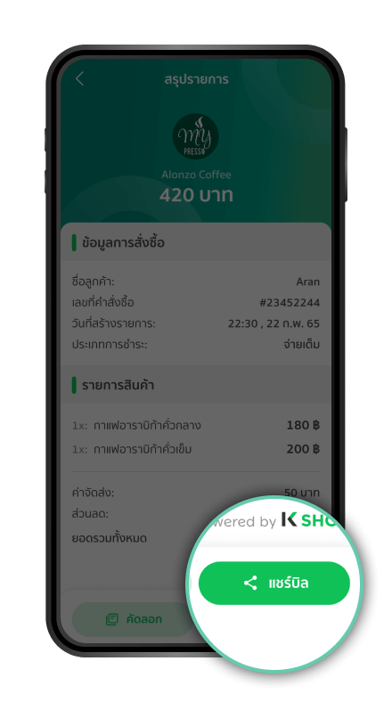 เลือกชื่อลูกค้า “เพื่อแชร์ลิงก์”