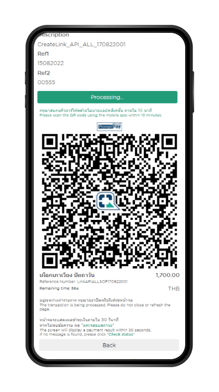 ลูกค้า กด “ลิงก์ชำระเงิน”