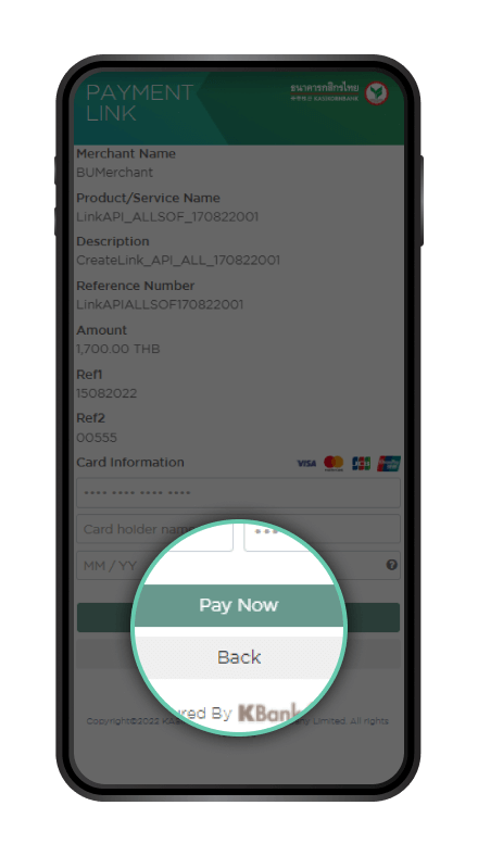 ให้ลูกค้า กรอกข้อมูลบัตร