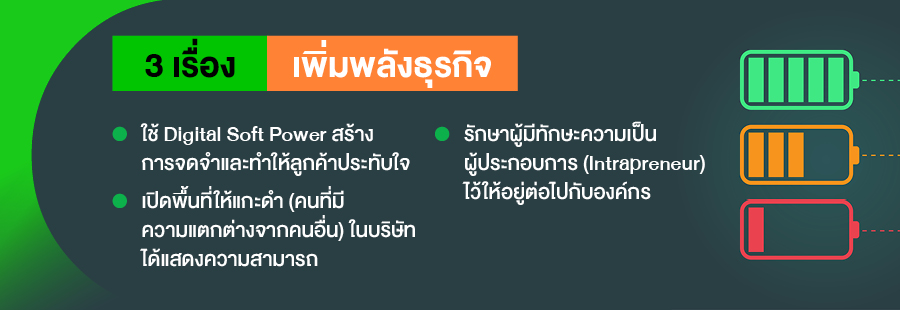 - ทักษะของ Leadership ผู้นำควรสร้างวัฒนธรรมองค์กร ให้พนักงานกล้าที่จะทดลอง กล้าที่จะล้มเหลว