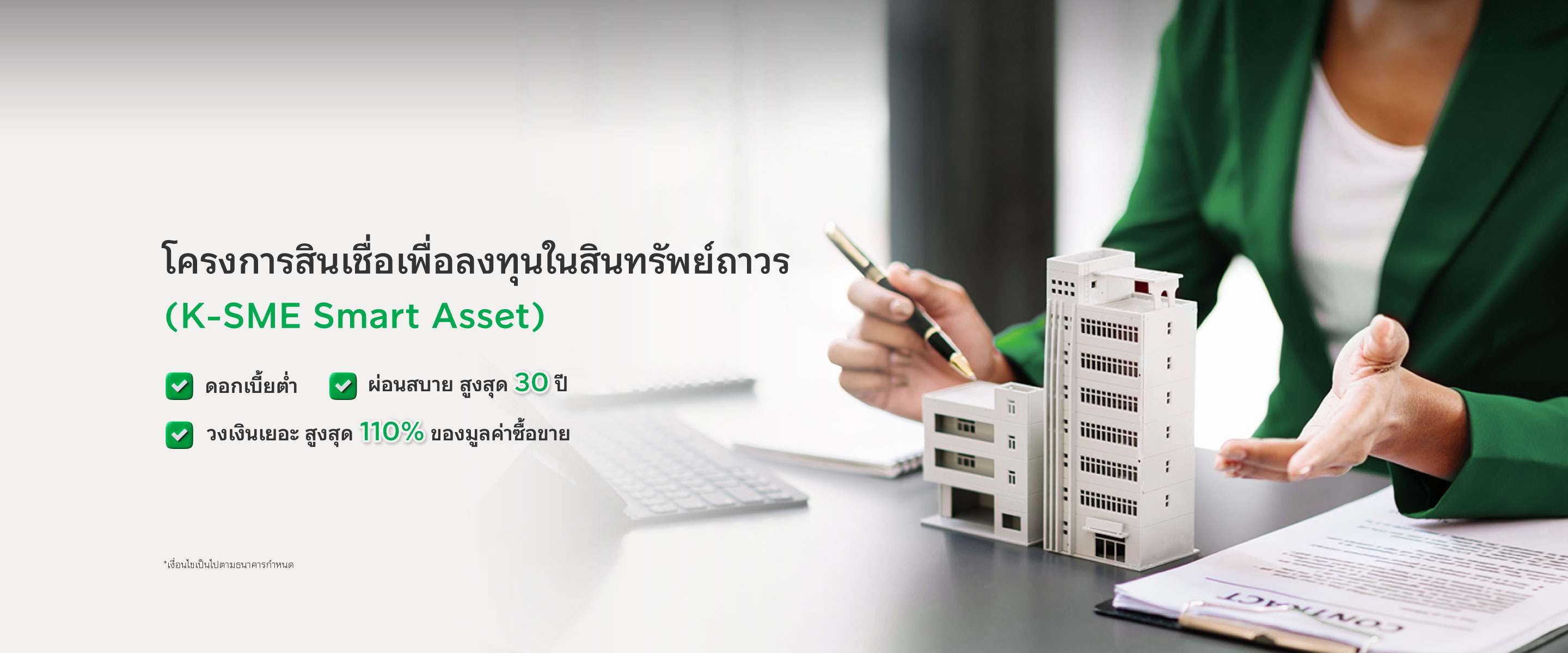| วงเงินสินเชื่อ | วงเงินกู้ เพื่อนำไปซื้อสินทรัพย์รอการขาย (NPA) ของธนาคาร หรือทรัพย์ที่อยู่ระหว่างการบังคับคดีหรือการขายทอดตลาดของกรมบังคับคดี และนำทรัพย์ดังกล่าว ใช้เป็นสถานที่ประกอบการ หรือใช้ประกอบการทำธุรกิจ |