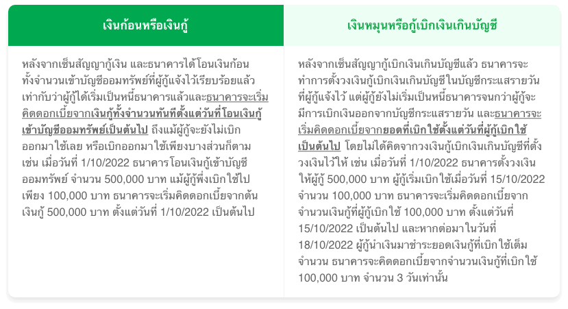 - ไม่รู้ว่าตอนนี้เริ่มเป็นหนี้แล้วหรือยัง สำหรับเงินก้อนกับเงินหมุน อาจจะมีระยะเวลาเริ่มเป็นหนี้ที่แตกต่างกัน ดังนี้