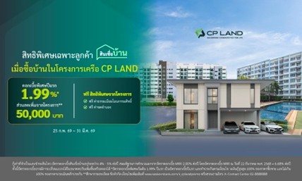 รับดอกเบี้ยพิเศษ 1.99% ปีแรก* ส่วนลดสูงสุด 50,000 บาท** ฟรี! ค่าโอนและค่าจดจำนอง