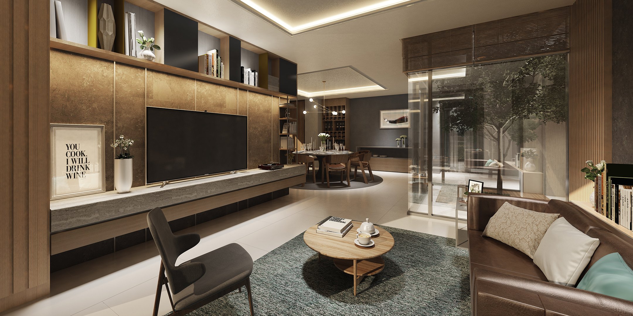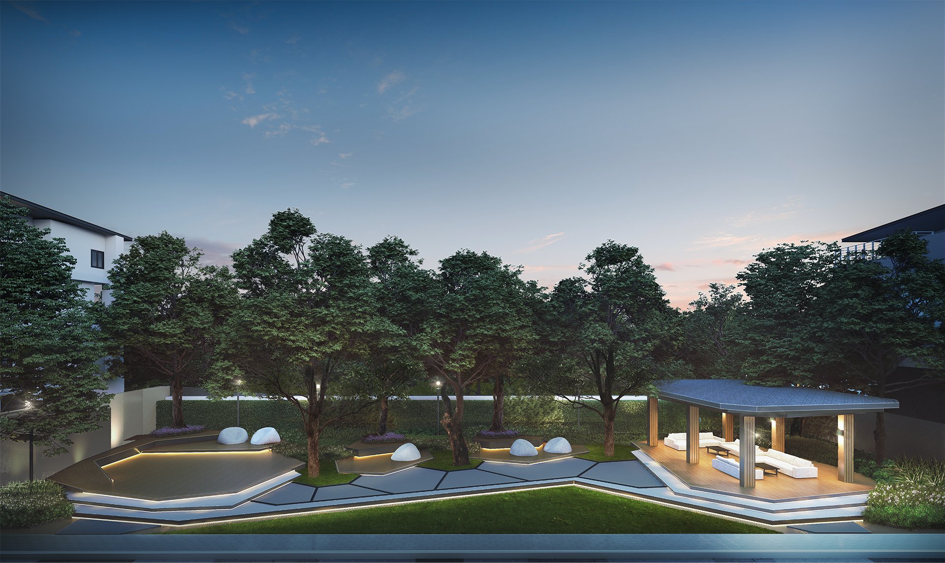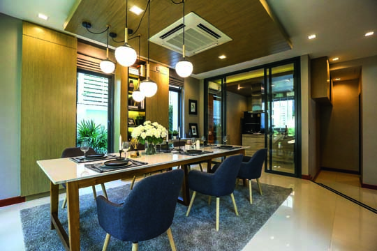 บ้านหลังเล็กสุดแบบ Allure ขนาด 3 ห้องนอน 4 ห้องน้ำ พร้อมที่จอดรถ 3 คัน จุดเด่นของบ้านมีการเจาะช่องเปิดกลางบ้าน ทำให้แสงธรรมชาติส่องเชื่อมผ่านถึงกันได้ทุกชั้น พื้นที่ชั้น 1 จะเป็น Common Area ที่เชื่อมฟังก์ชันต่อกันระหว่างมุมรับประทานอาหารและนั่งเล่น ห้องครัวเป็นแบบปิดแยกเป็นสัดส่วน และที่ชั้น 2 ฟังก์ชันหลักๆ จะเป็นพื้นที่ Master Living สำหรับครอบครัว