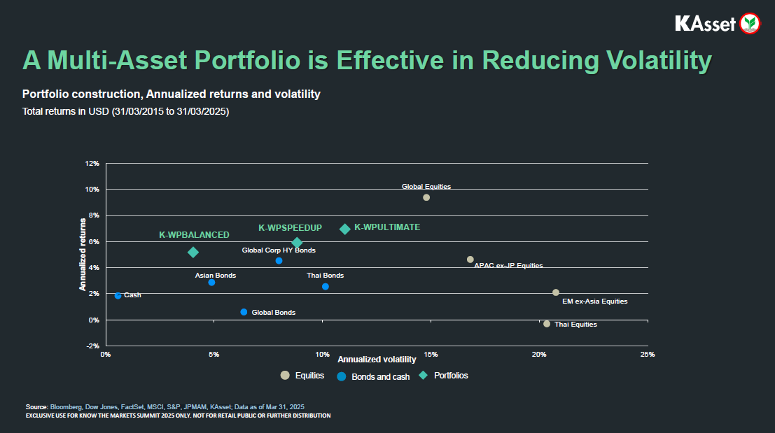 KAsset จับมือ J.P. Morgan จัดงาน Know The Markets Summit 2025 ใน Theme “Core Stability Amidst Market Volatility” ชูโรงกองทุนผสมเรือธงอย่าง K-WealthPLUS Series ที่ช่วยลดความเสี่ยงและผันผวนน้อยกว่าหุ้นโลก