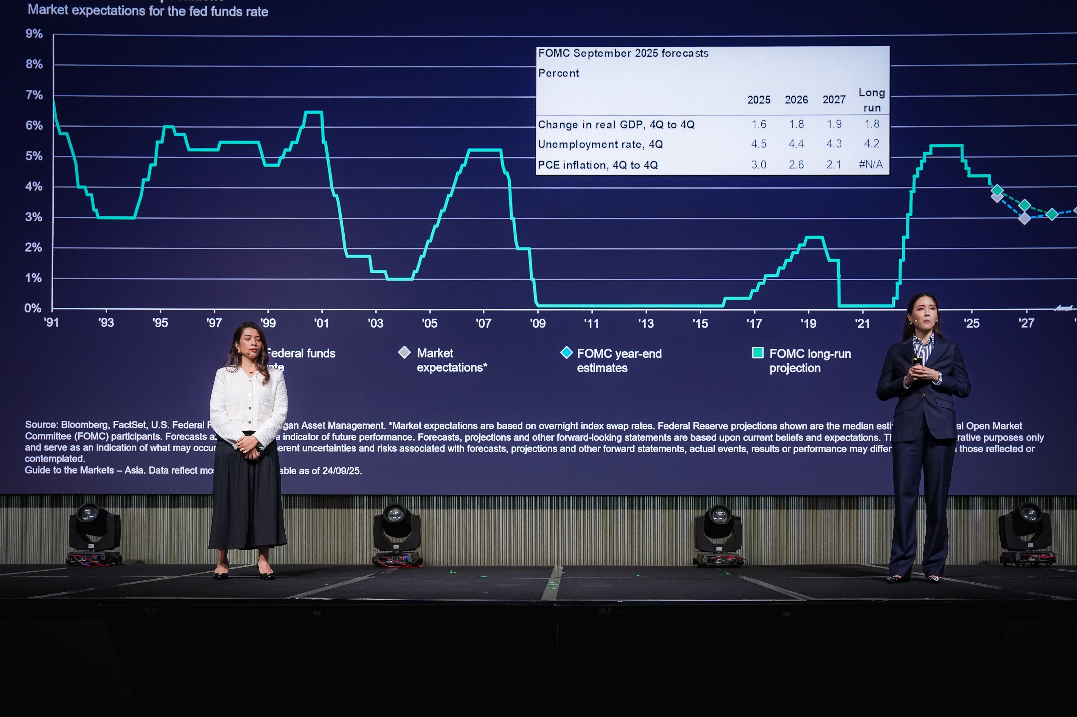 คำตอบ: ทาง KAsset และ JPMAM มองสหรัฐฯ ลดดอกเบี้ย 3 ครั้งในปี 2026 อย่างไรก็ตามคาดว่า Fed ยังต้องรักษาสมดุลระหว่างเศรษฐกิจ ที่มี AI เป็นปัจจัยหนุนการเติบโตหลัก และตลาดแรงงานที่มีแนวโน้มชะลอตัวลง ในขณะที่เงินเฟ้อยังยืนสูงอยู่