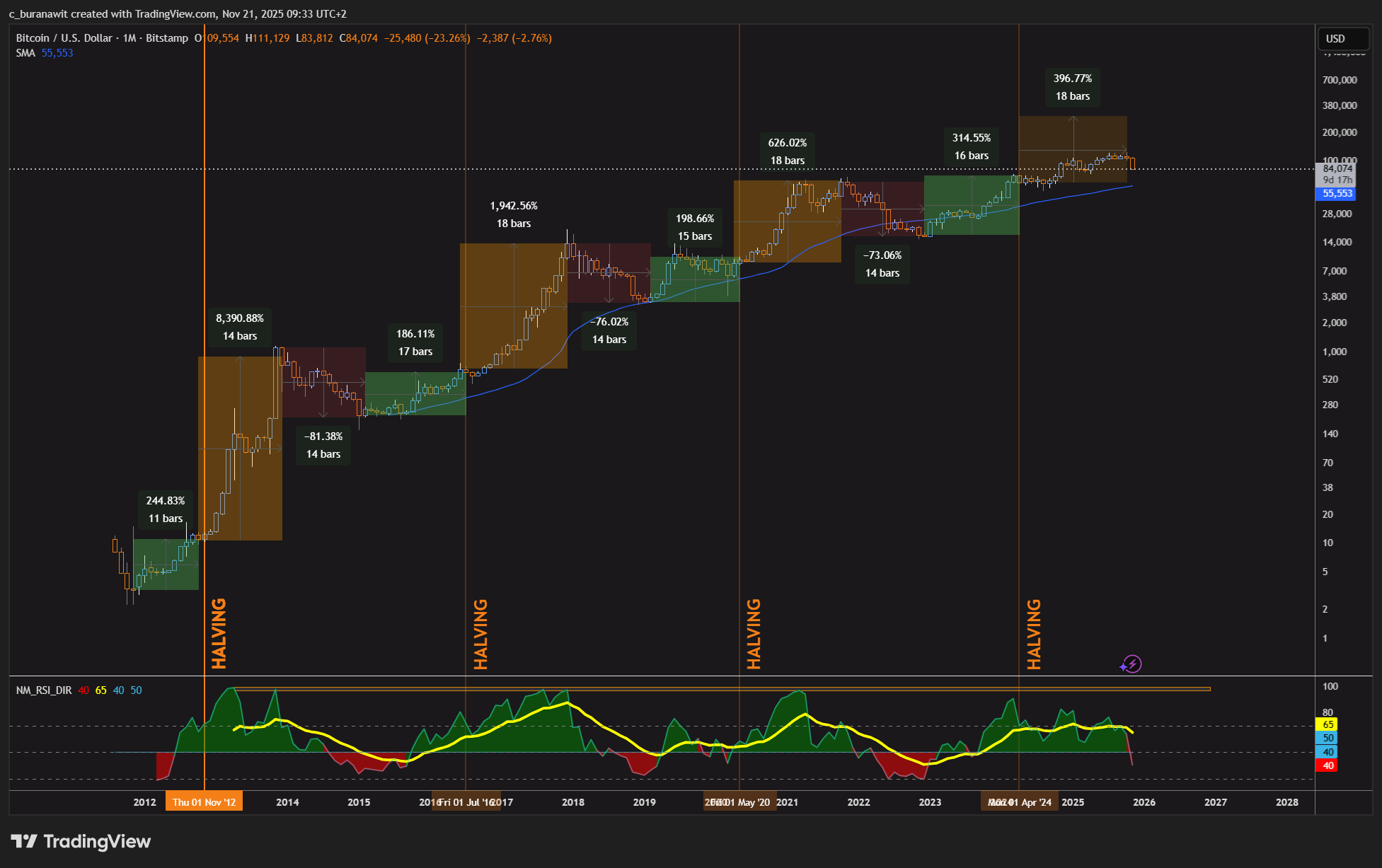 ภาพวัฎจักรวงจรการขึ้น-ลง ของราคา Bitcoin